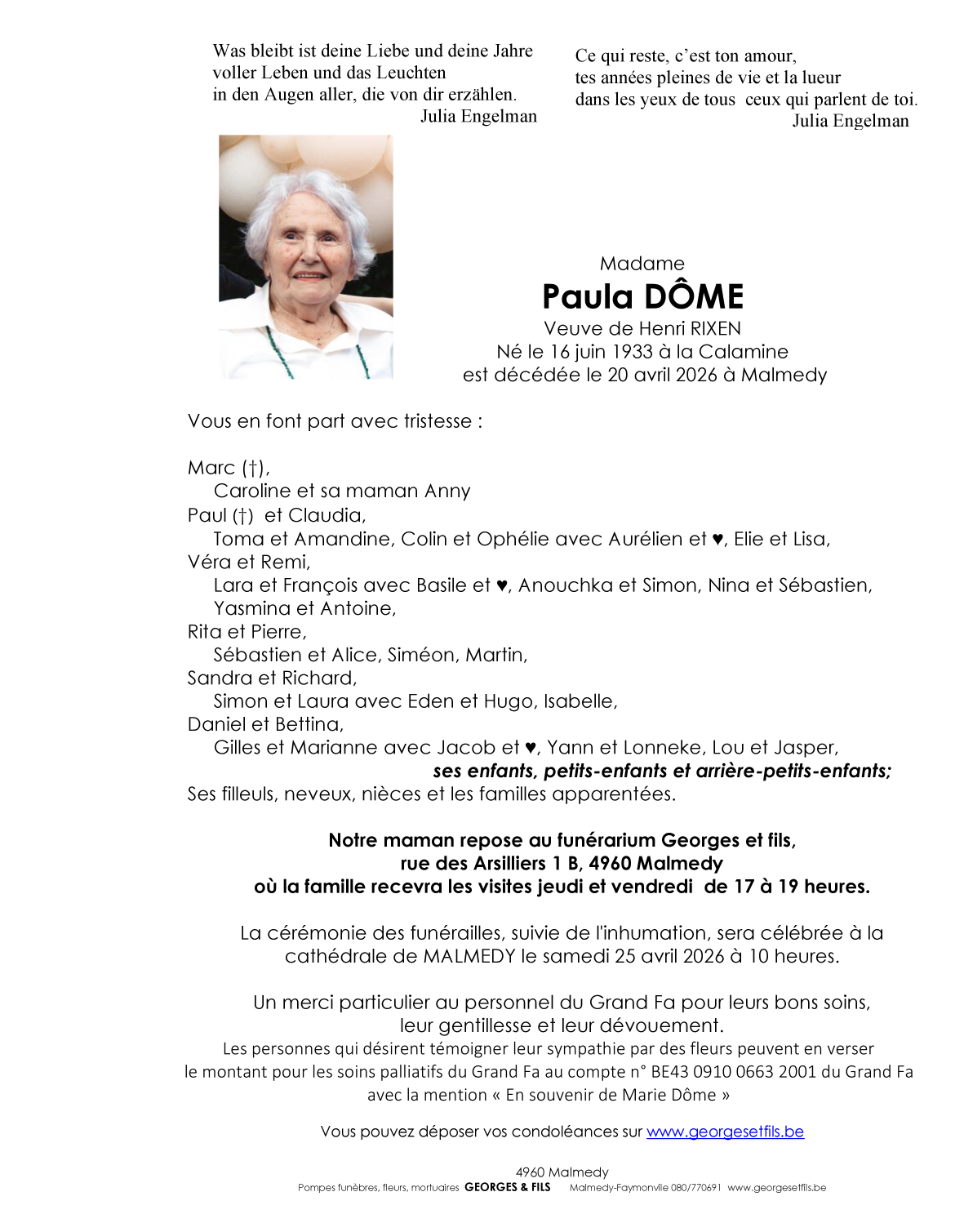 Cimetière de Malmedy le samedi 25 avril à 11 heures 30