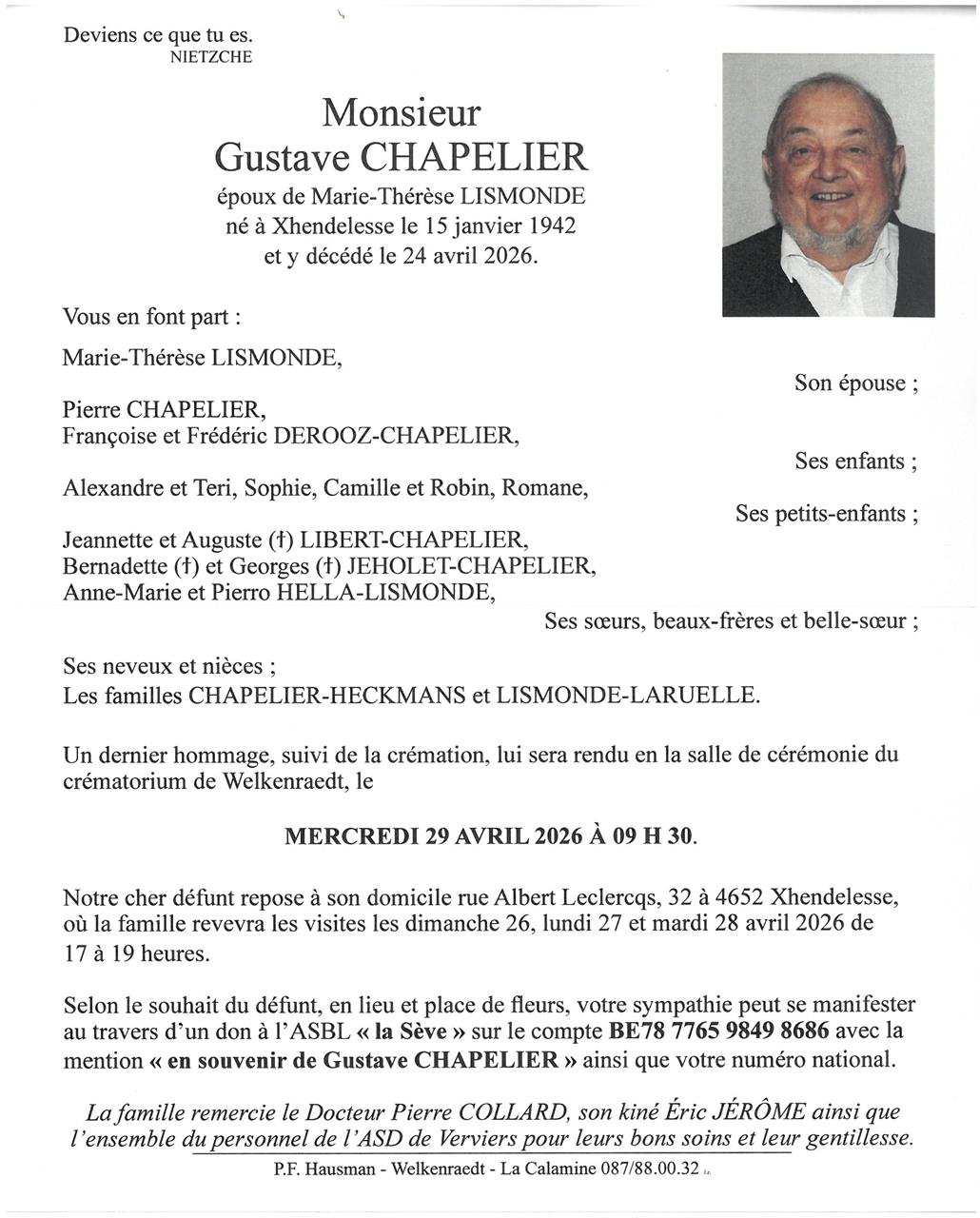 crématorium de Welkenraedt le mercredi 29 avril à 9 heures 30