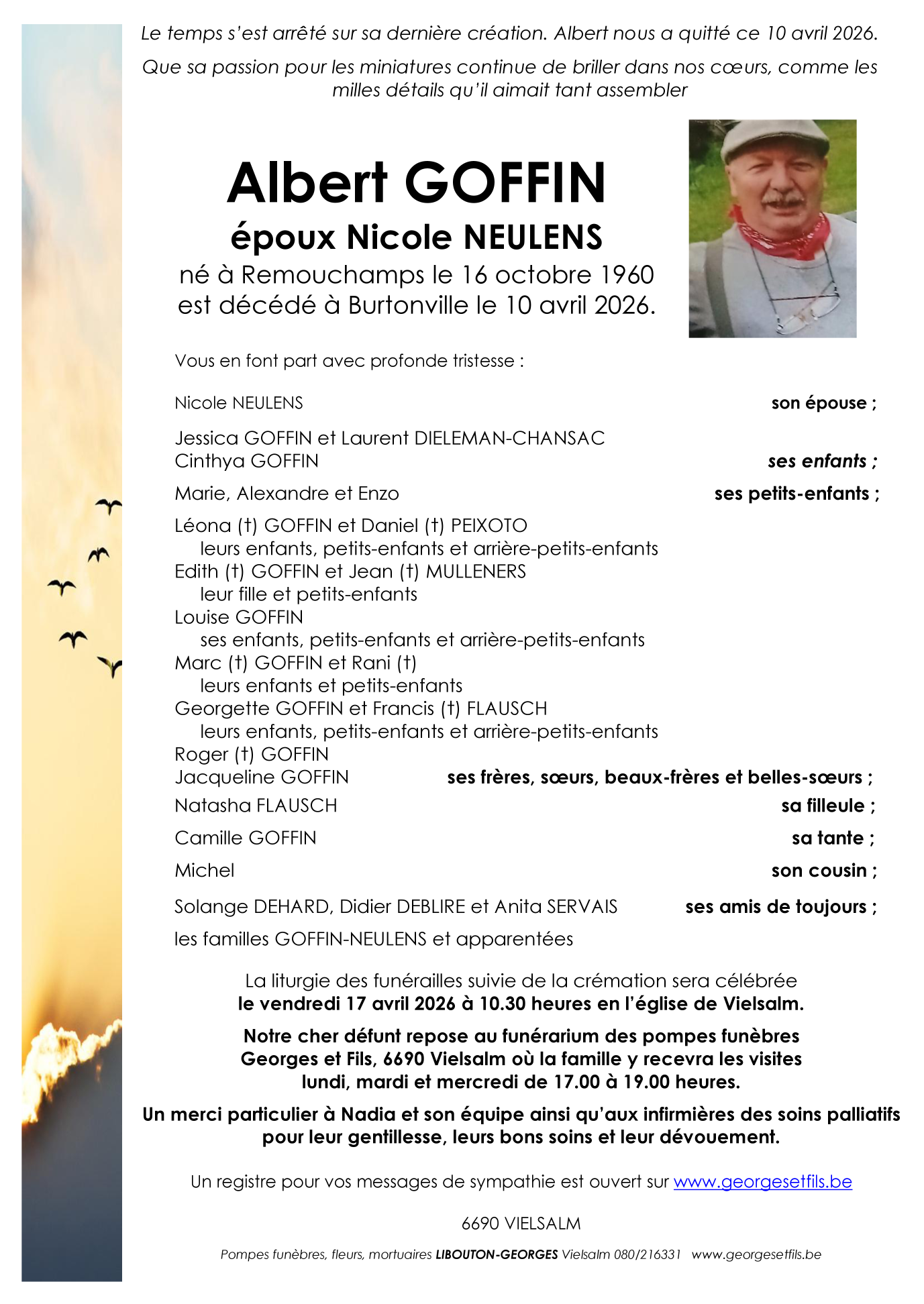 Centre Funéraire de Welkenraedt le vendredi 17 avril à 14 heures