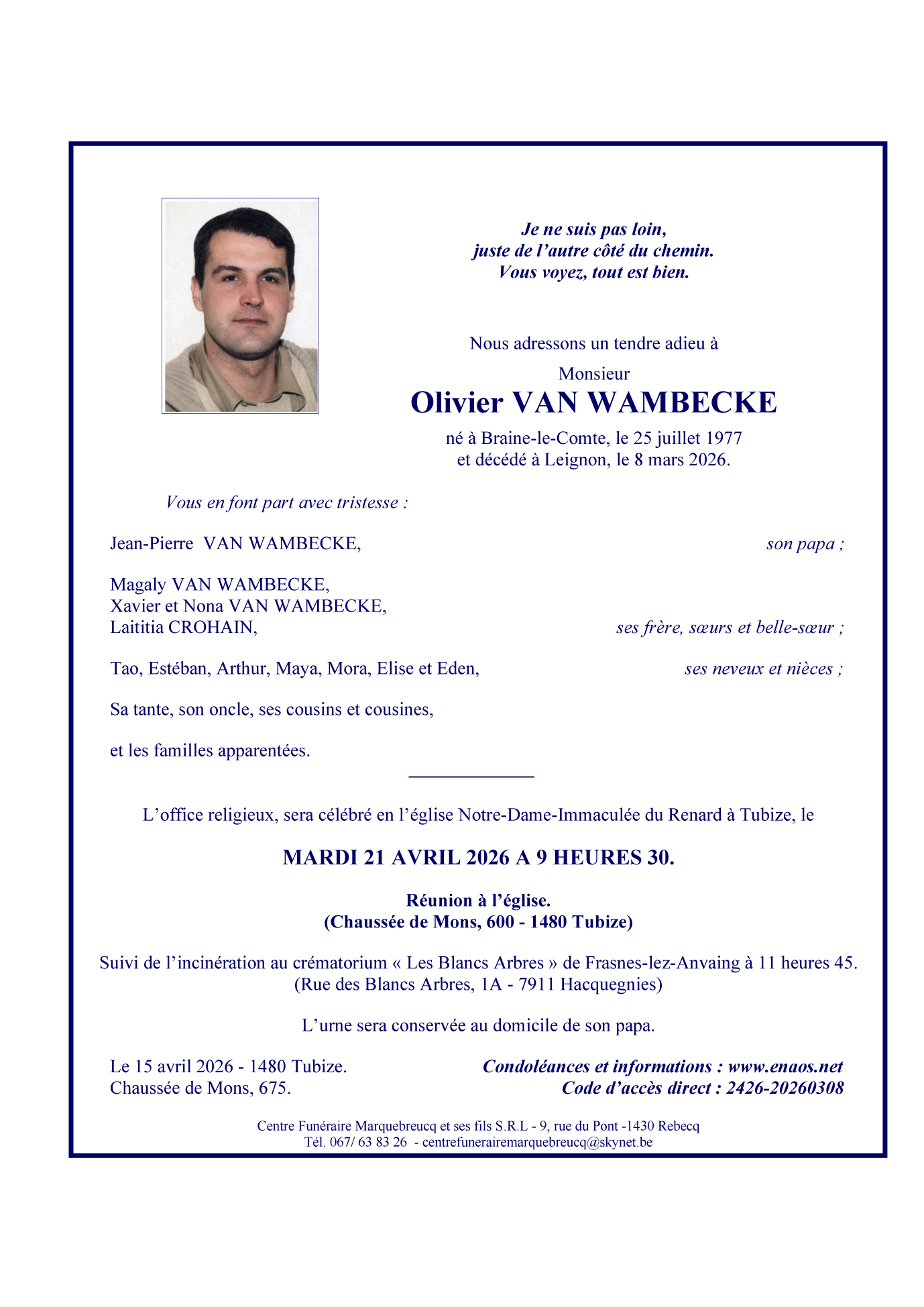 Overlijdensbericht van Meneer Olivier VAN WAMBECKE