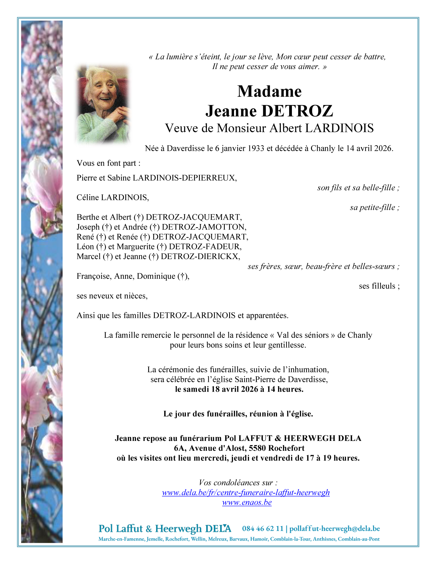 Overleden te Chanly (6921) op dinsdag 14 april 2026 op 93-jarige leeftijd