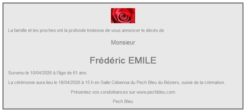 CENTRE FUNERAIRE DE BEZIERS le samedi 18 avril à 18 heures 15