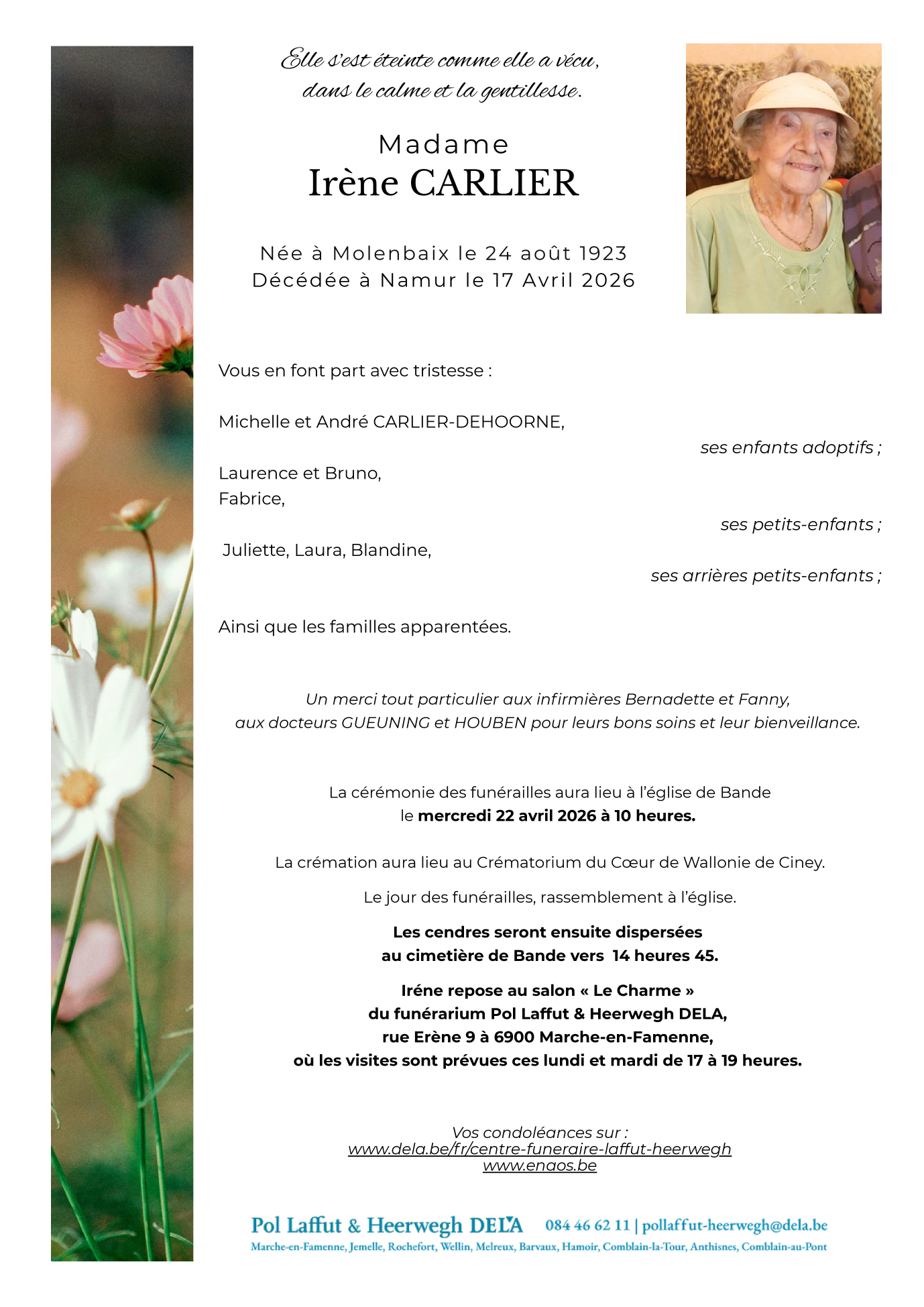 crématorium du Coeur de Wallonie le mercredi 22 avril à 11 heures 45