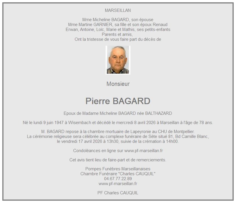 Avis de décès de Monsieur Pierre BAGARD