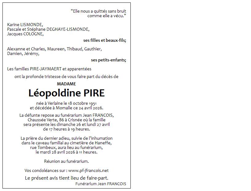 Funérarium Jean FRANCOIS te Crisnée op dinsdag 28 april om 11 u