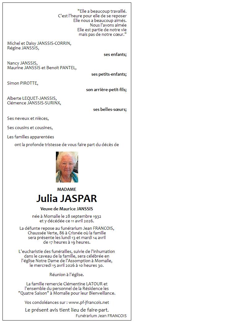 cimetière de Momalle op woensdag 15 april om 11 u 30