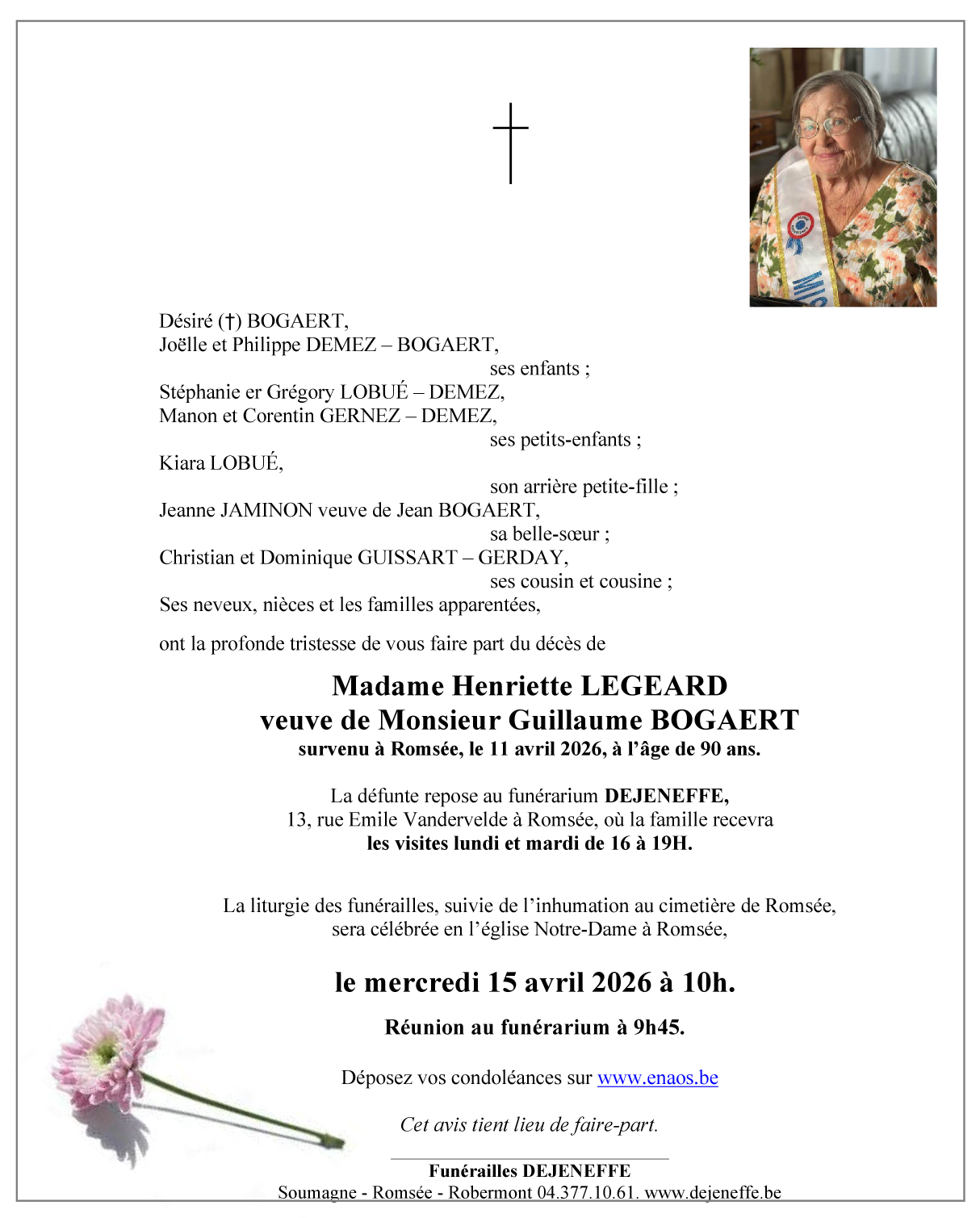 Avis de décès de Madame Henriette BOGAERT - LEGAERD