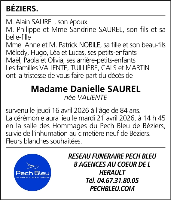 Cimetière Neuf de BEZIERS on Tuesday 21 April at 15 hours 45