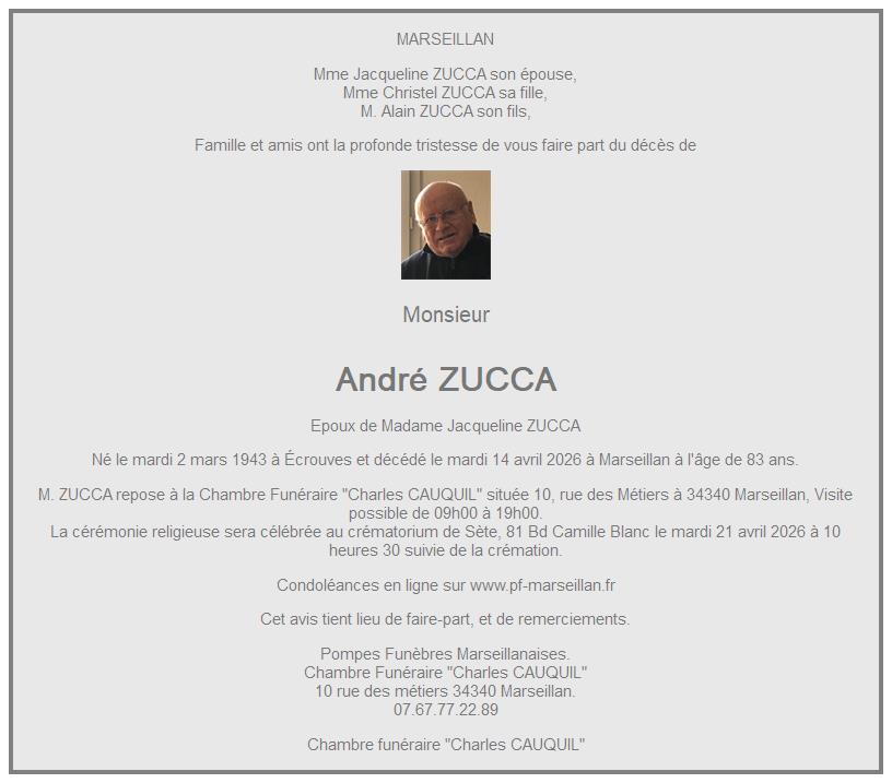 Overlijdensbericht van Meneer André ZUCCA