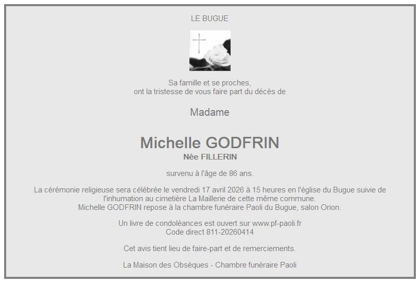 Avis de décès de Madame Michelle GODFRIN née FILLERIN