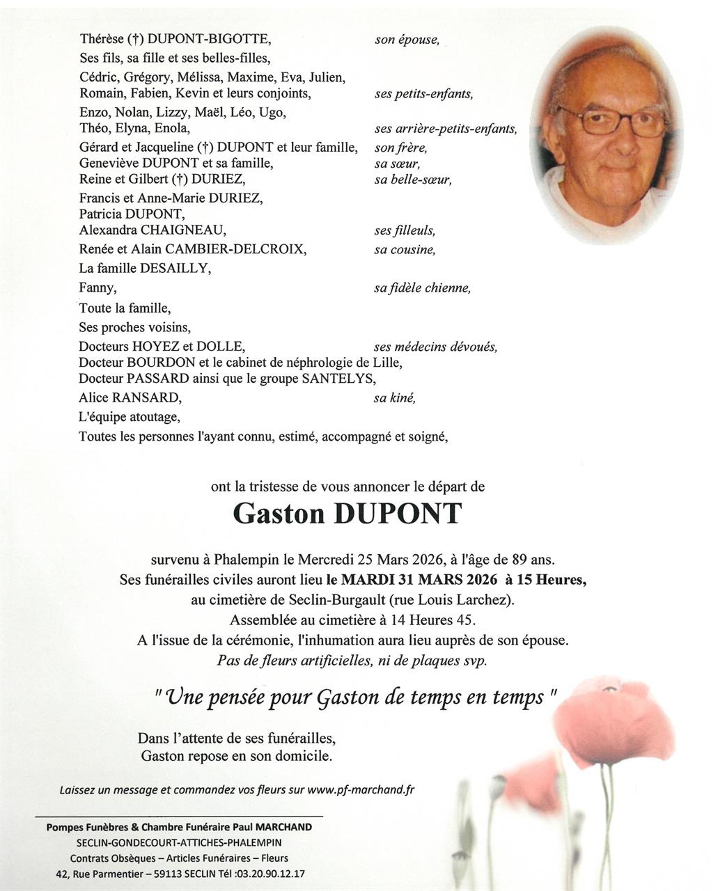 Décédé à Phalempin (59133, France) le mercredi 25 mars 2026 à l'âge de 89 ans
