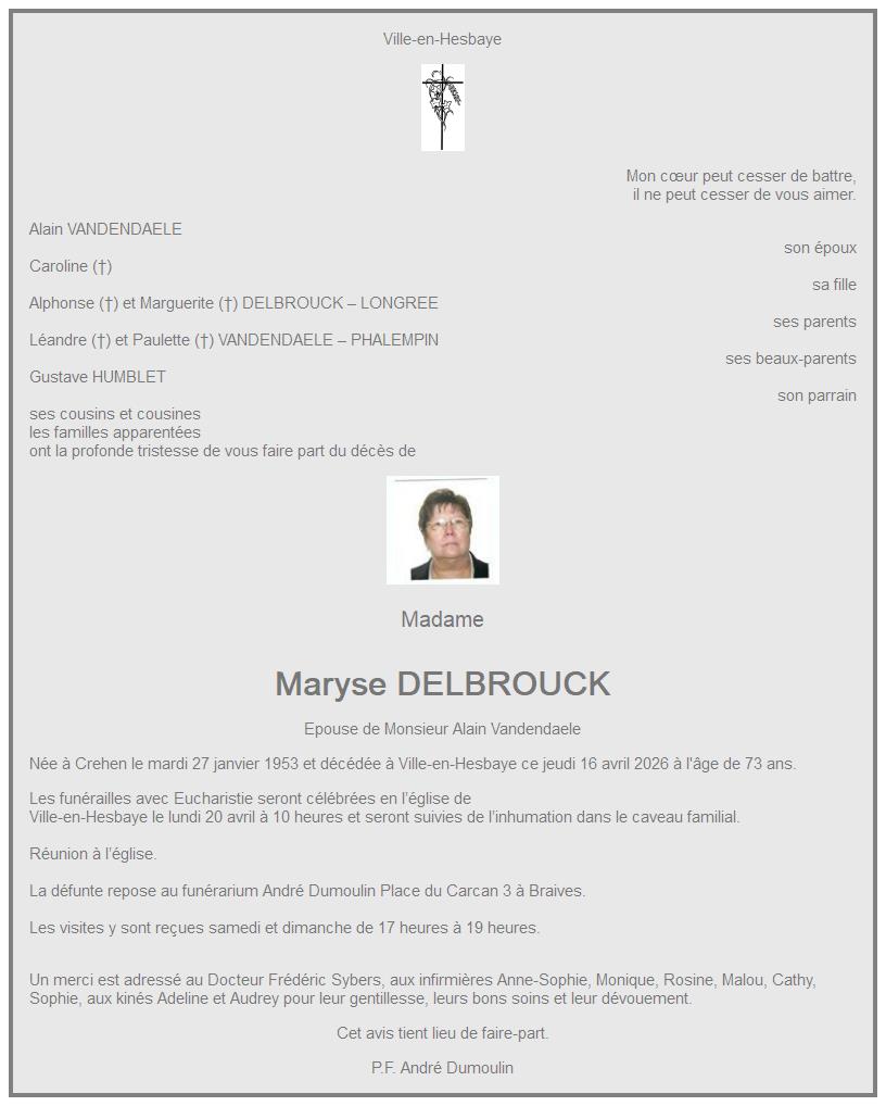 Avis de décès de Madame Maryse DELBROUCK