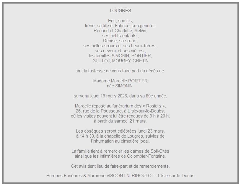 Avis de décès de Titre2[6] Marcelle PORTIER nacida SIMONIN