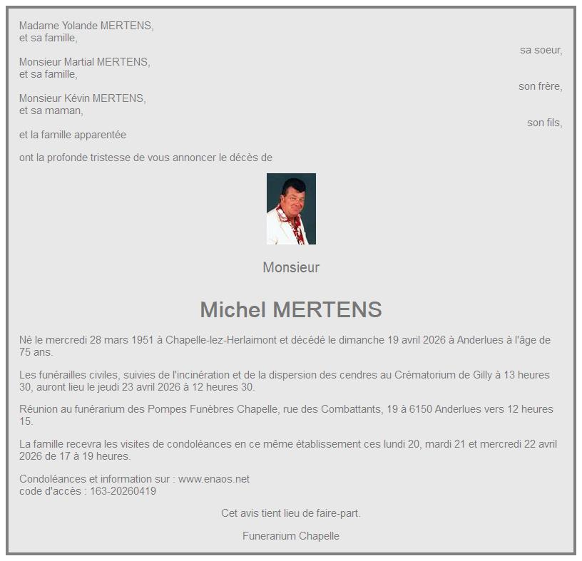 Crématorium de Charleroi le jeudi 23 avril à 13 heures 30