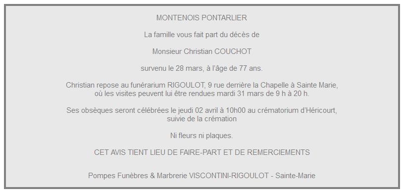 Décédé à Montenois (25260, France) le samedi 28 mars 2026 à l'âge de 77 ans