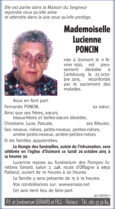 Overleden te Carlsbourg (6850) op vrijdag 23 oktober 2015 op 85-jarige leeftijd