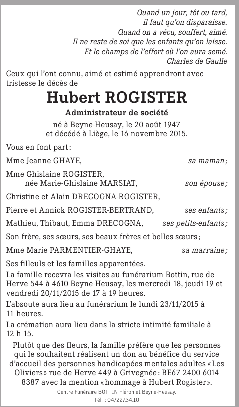 Overleden te Liège (4000) op maandag 16 november 2015 op 68-jarige leeftijd