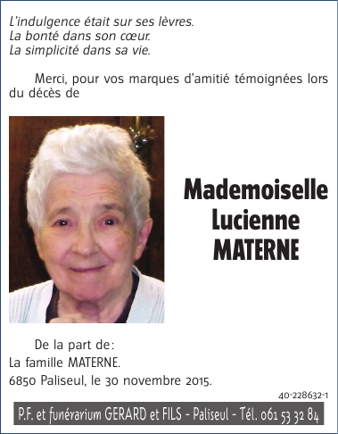 Mademoiselle Lucienne MATERNE
