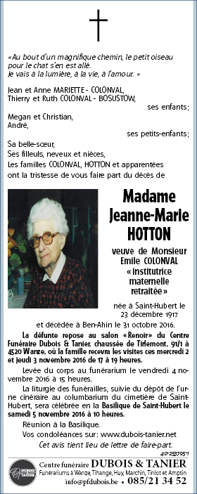 Nacida en Saint-Hubert (6870) el domingo, 23 de diciembre de 1917