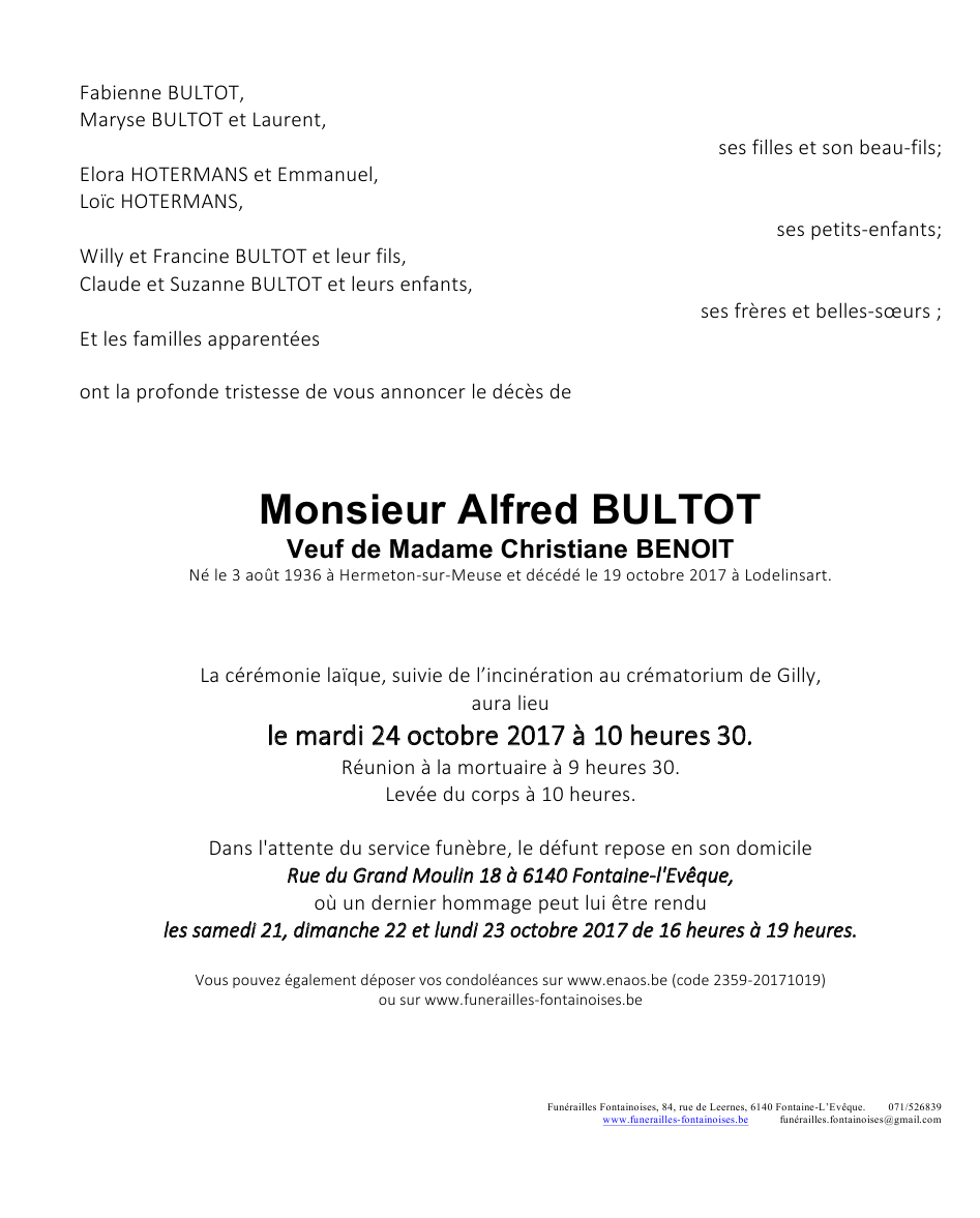 Décédé à Lodelinsart (6042) le jeudi 19 octobre 2017 à l'âge de 81 ans