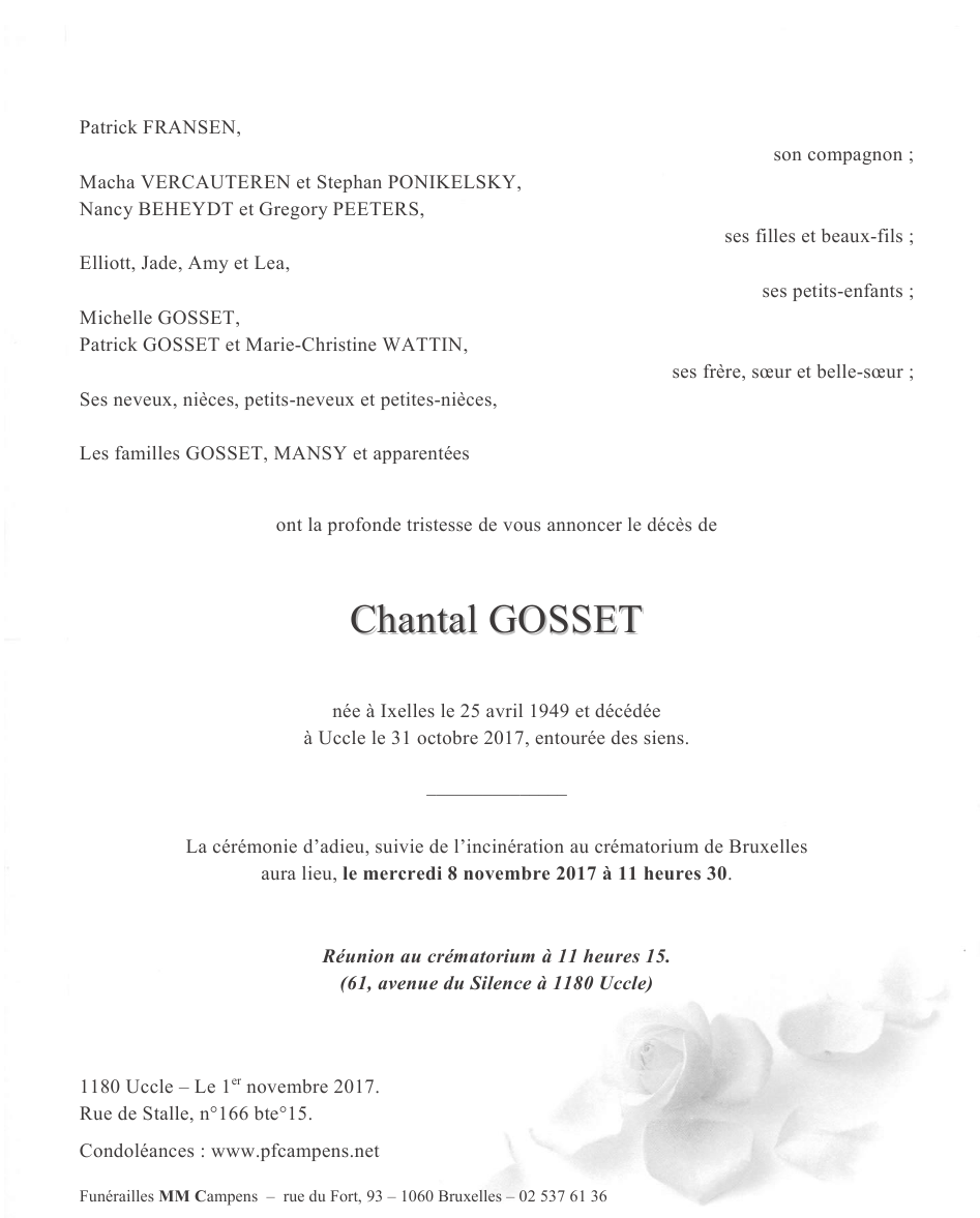 Died in Uccle (1180) on 31 October 2017 at the age of 68 years