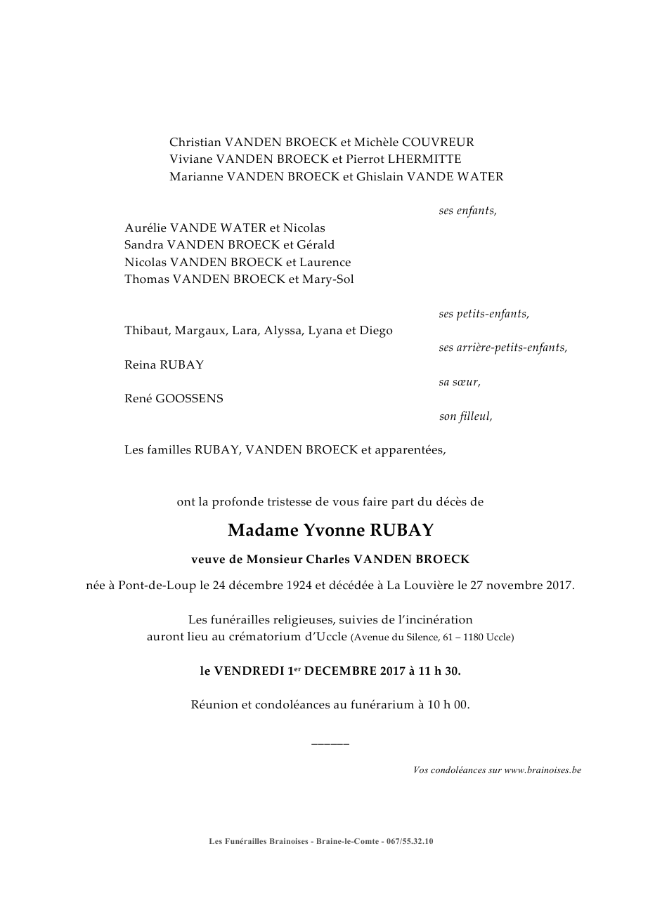 Décédée à La Louvière (7100) le lundi 27 novembre 2017 à l'âge de 92 ans