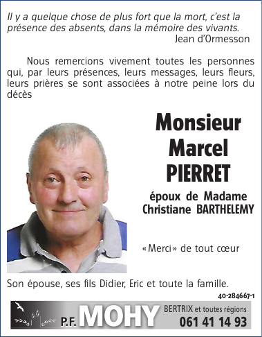 Décédé à Mortehan (6880) le lundi 11 décembre 2017 à l'âge de 69 ans