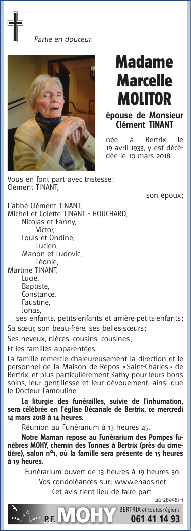 Died in Bertrix (6880) on 10 March 2018 at the age of 84 years