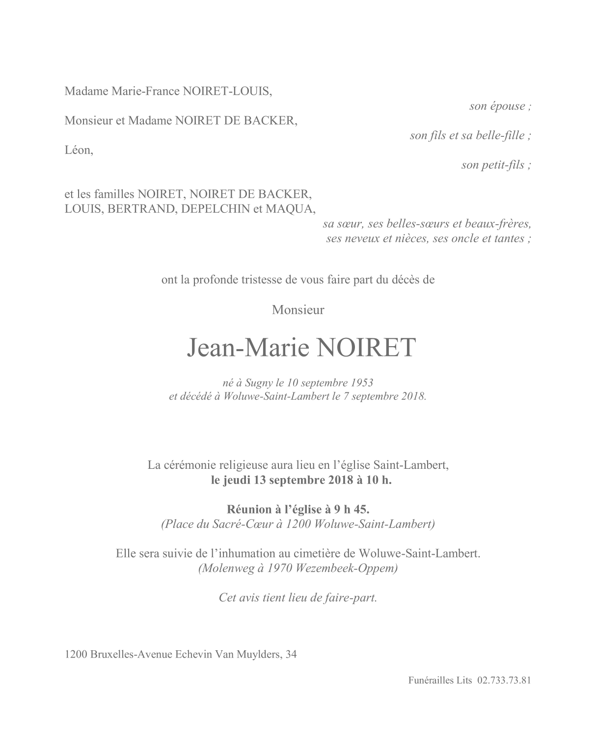 Décédé à Woluwe-Saint-Lambert (1200) le vendredi 7 septembre 2018 à l'âge de 64 ans
