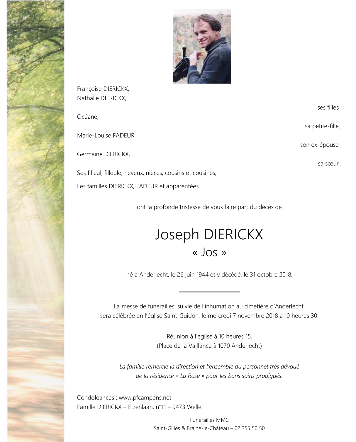 Décédé à Anderlecht (1070) le mercredi 31 octobre 2018 à l'âge de 74 ans