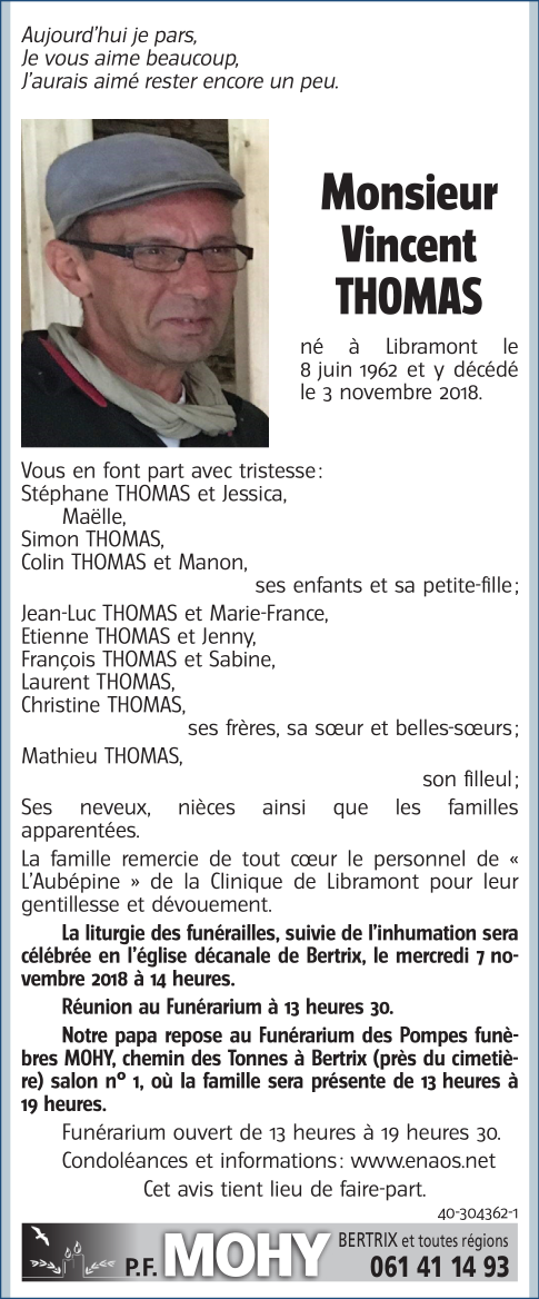 Died in Libramont (6800) on 03 November 2018 at the age of 56 years