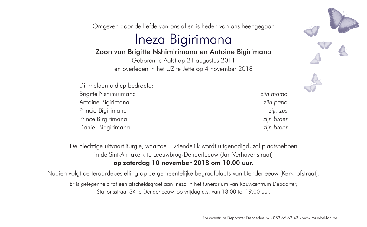 Décédé à Brussel (Jette) (1090) le dimanche 4 novembre 2018 à l'âge de 7 ans
