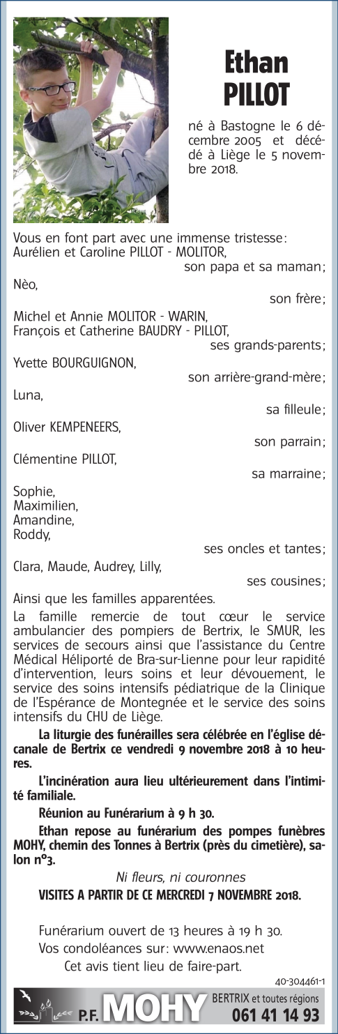 Fallecido en Liège (4000) el lunes, 5 de noviembre de 2018 a la edad de 12 años