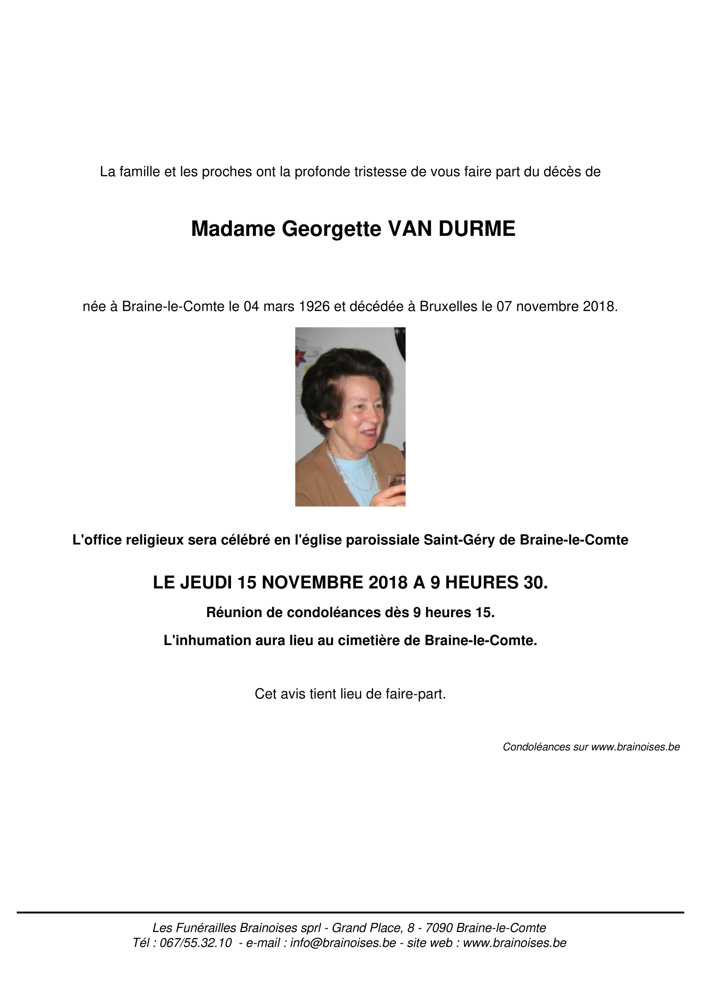 Fallecida en Schaarbeek (1030) el miércoles, 7 de noviembre de 2018 a la edad de 92 años