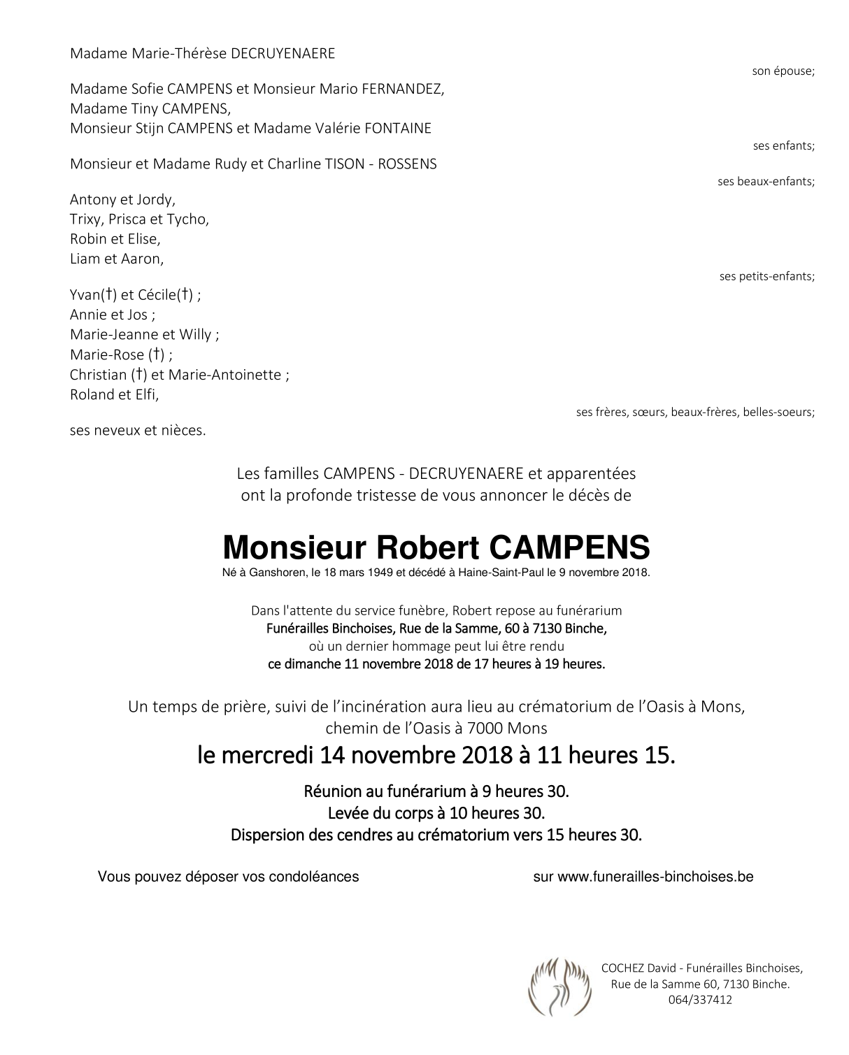 Décédé à Jolimont (7100) le vendredi 9 novembre 2018 à l'âge de 69 ans