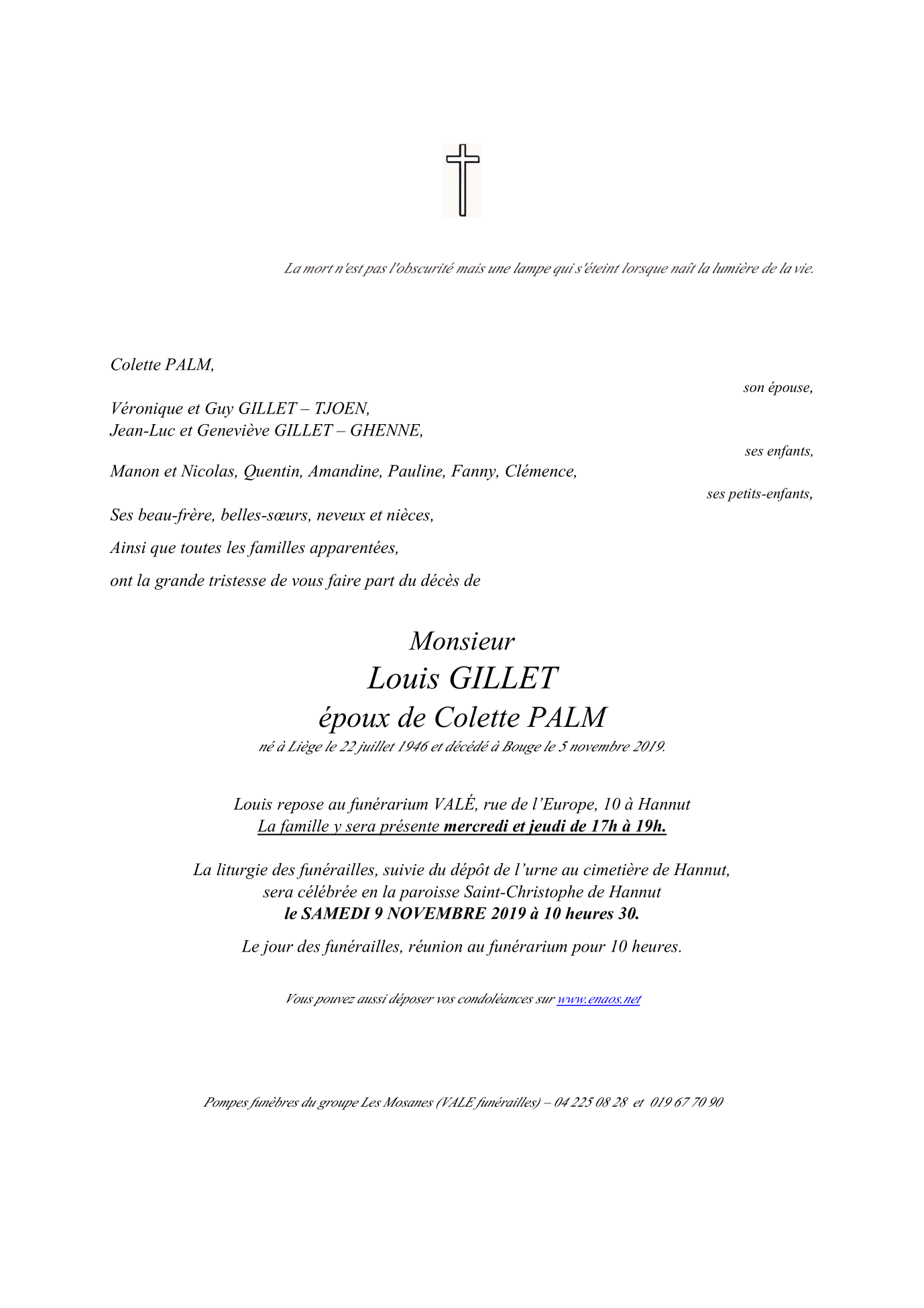 Décédé à Bouge (5004) le mardi 5 novembre 2019 à l'âge de 73 ans