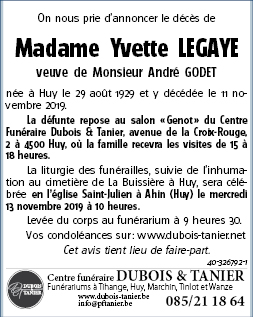 Died in Huy (4500) on 11 November 2019 at the age of 90 years
