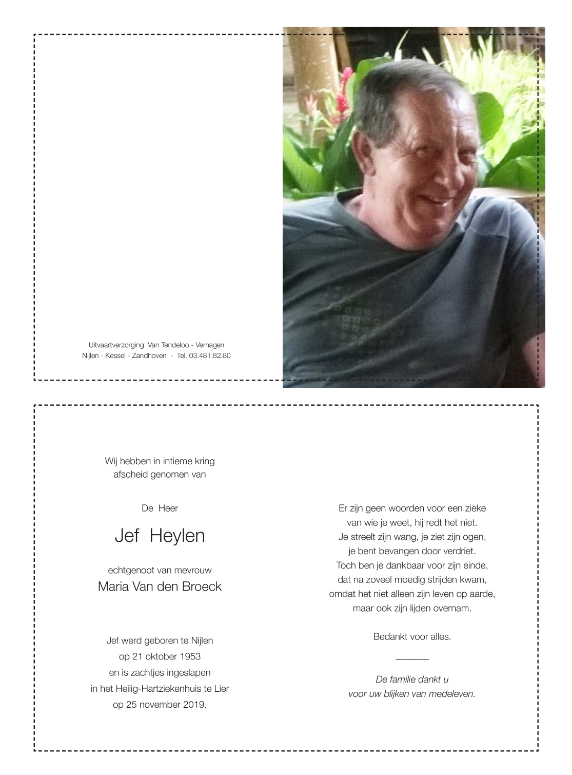 Décédé à Lier (2500) le lundi 25 novembre 2019 à l'âge de 66 ans