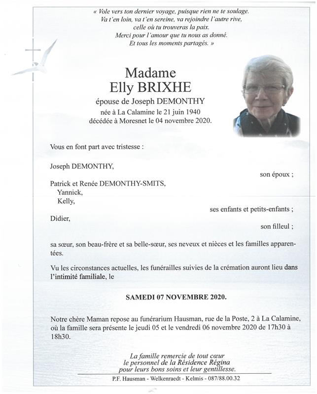Died in Moresnet (4850) on 04 November 2020 at the age of 80 years