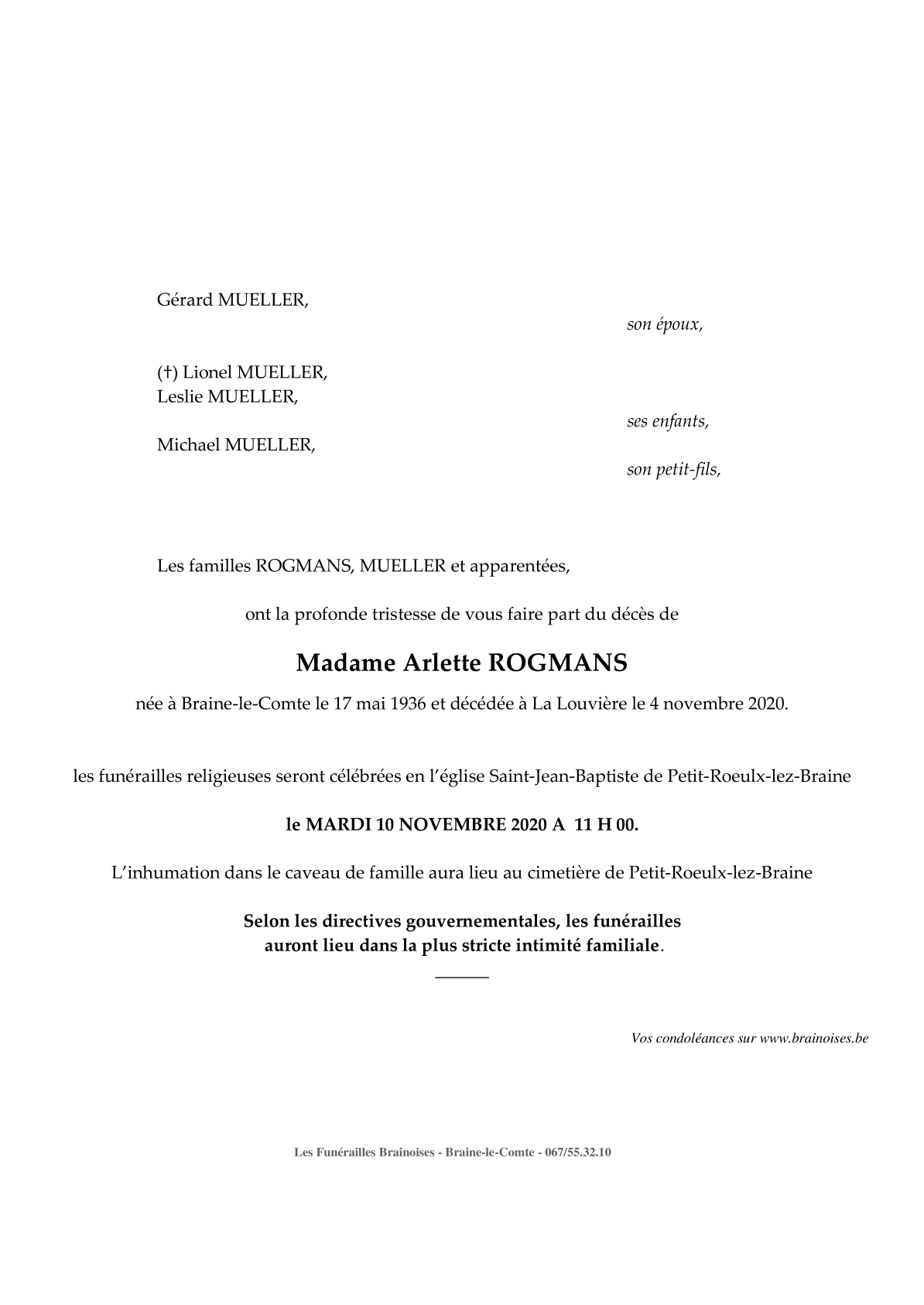 Décédée à La Louvière (7100) le mercredi 4 novembre 2020 à l'âge de 84 ans