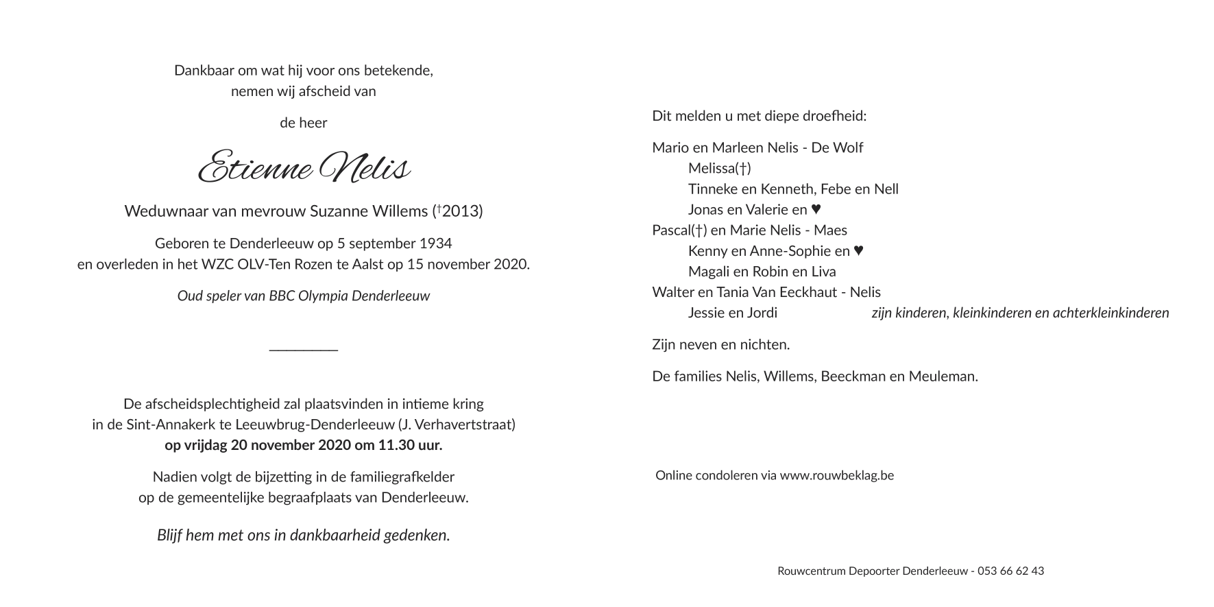 Décédé à Aalst (9300) le dimanche 15 novembre 2020 à l'âge de 86 ans