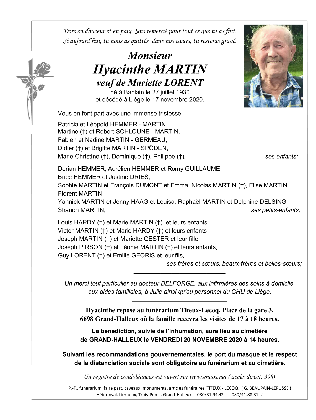 Décédé à Liège (4000) le mardi 17 novembre 2020 à l'âge de 90 ans