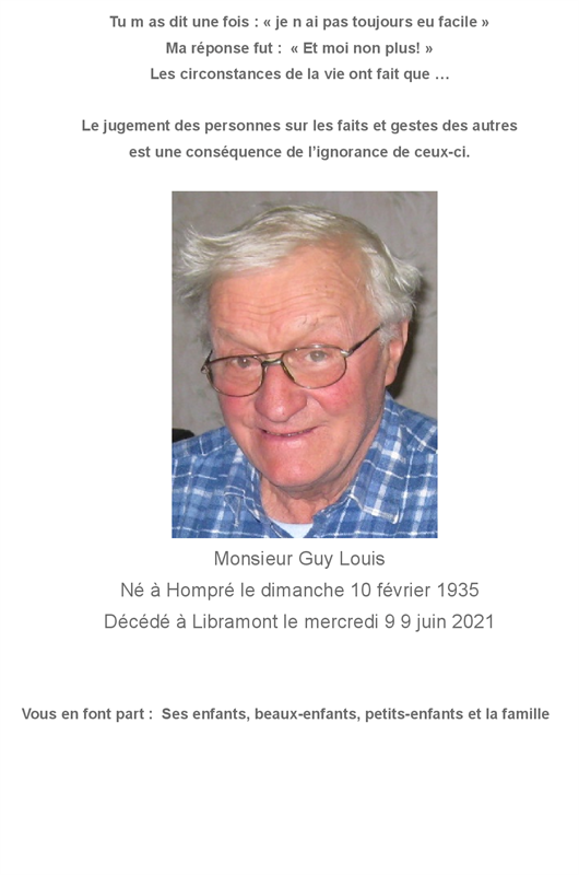 Décédé à Libramont (6800) le mercredi 9 juin 2021 à l'âge de 86 ans