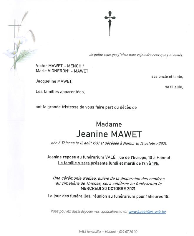 Madame Jeanine MAWET
