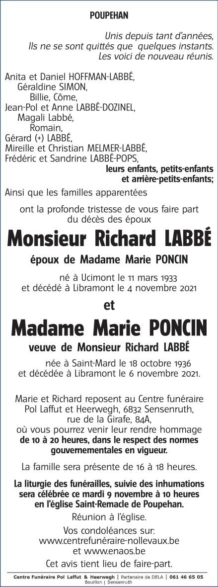 Décédé à Libramont-Chevigny (6800) le jeudi 4 novembre 2021 à l'âge de 88 ans