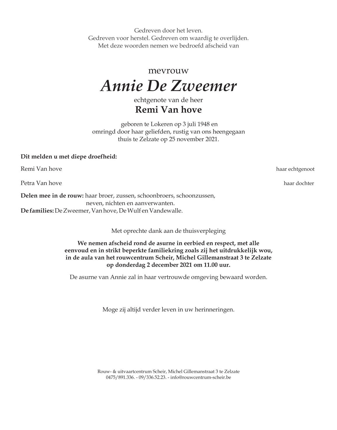 Mevrouw Annie De Zweemer