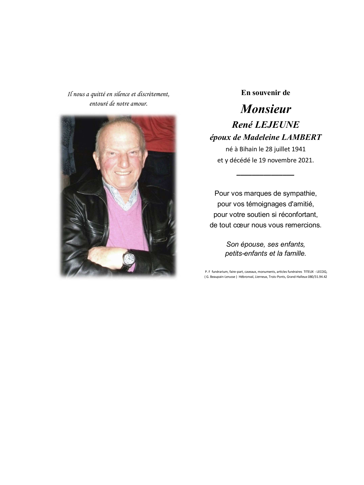 Fallecido en Bihain (6690) el viernes, 19 de noviembre de 2021 a la edad de 80 años