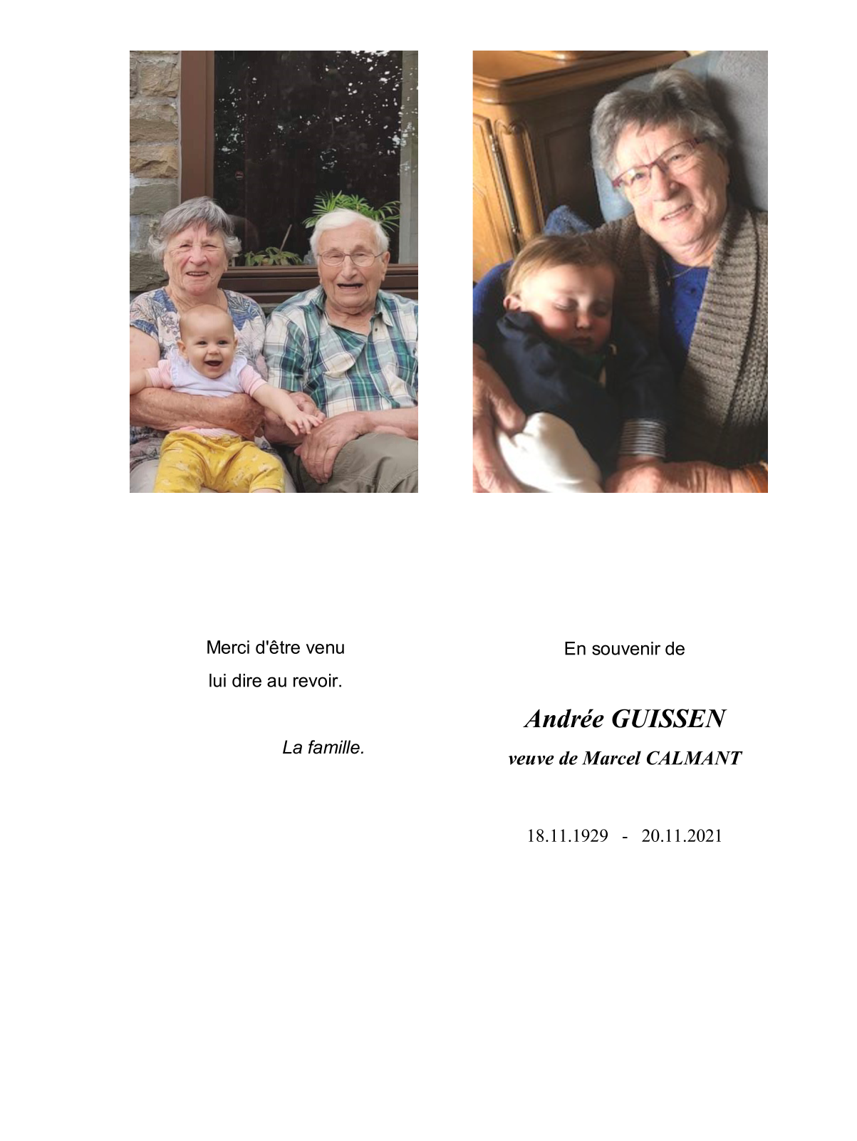Veuve de Monsieur Marcel CALMANT