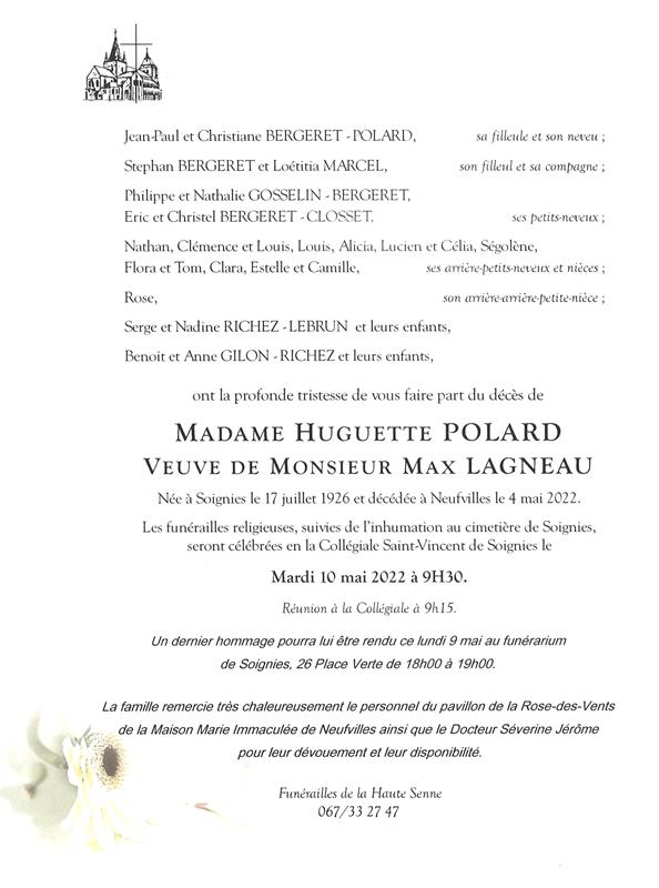 Décédée à Neufvilles (7063) le mercredi 4 mai 2022 à l'âge de 95 ans