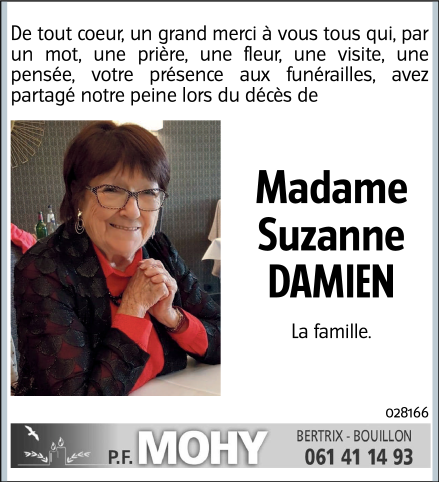 Décédée à Bertrix (6880) le dimanche 8 mai 2022 à l'âge de 79 ans